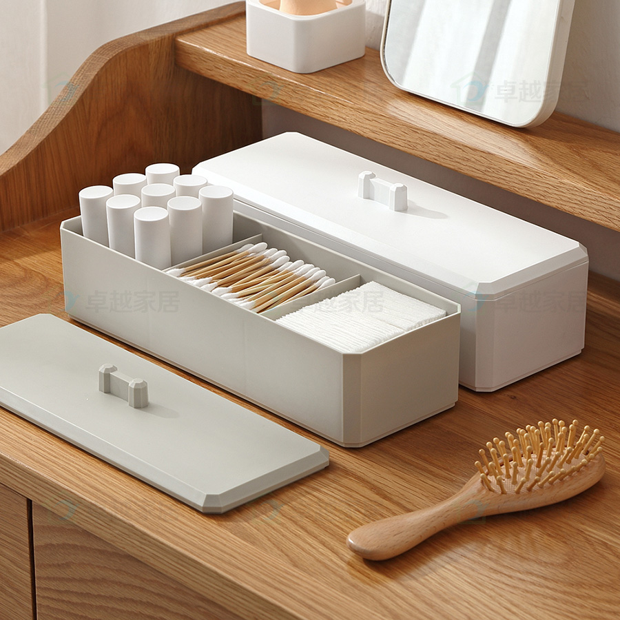 功能及卖点: 带盖分格设计,防尘防潮防蛀,适用于收纳小件首饰、化妆棉、粉扑、棉签等物品