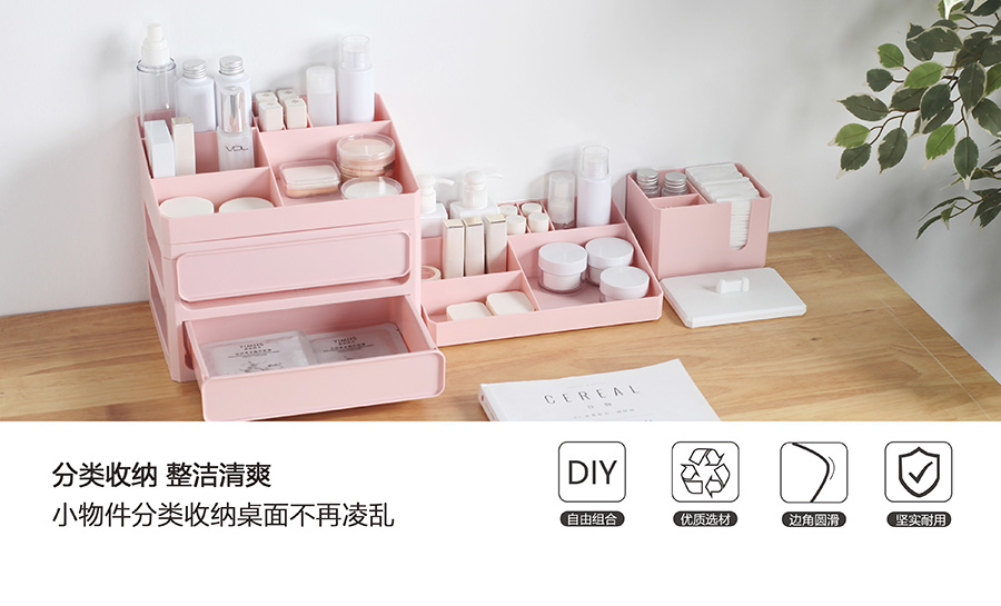 功能及卖点: 分格+抽屉大容量收纳,不同物品分格分类收纳,一目了然,方便拿取,告别凌乱桌面,享受整洁生活。产品可叠加设计的小收纳抽屉柜,根据实际环境多功能使用,办公桌小件杂物收纳,梳妆台化妆品、首饰等收纳。