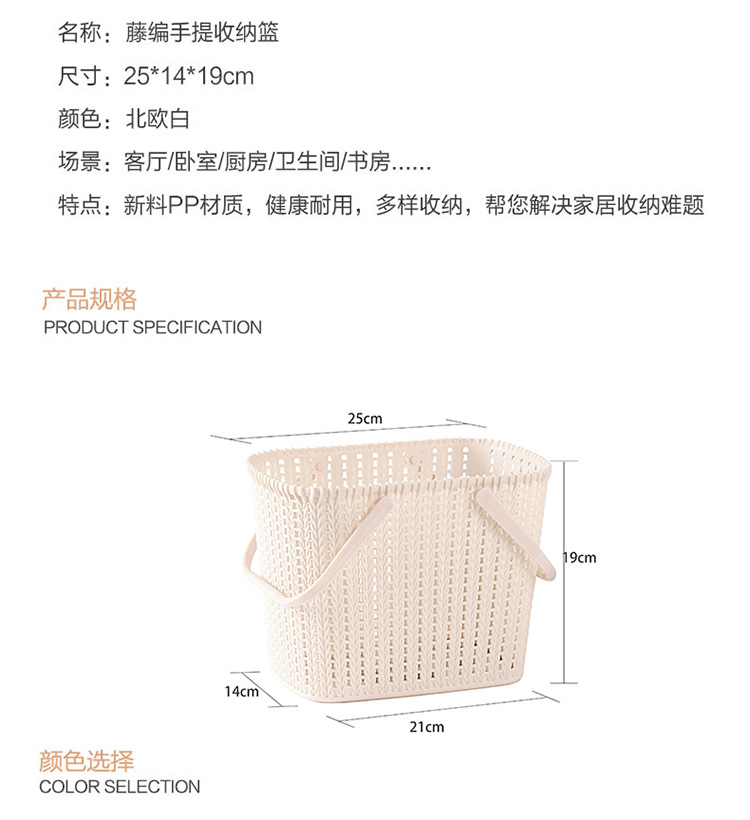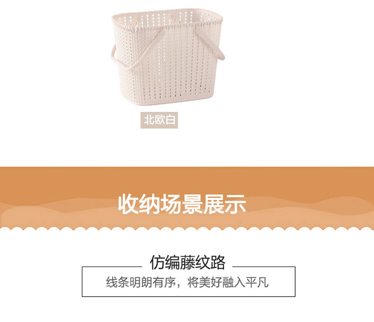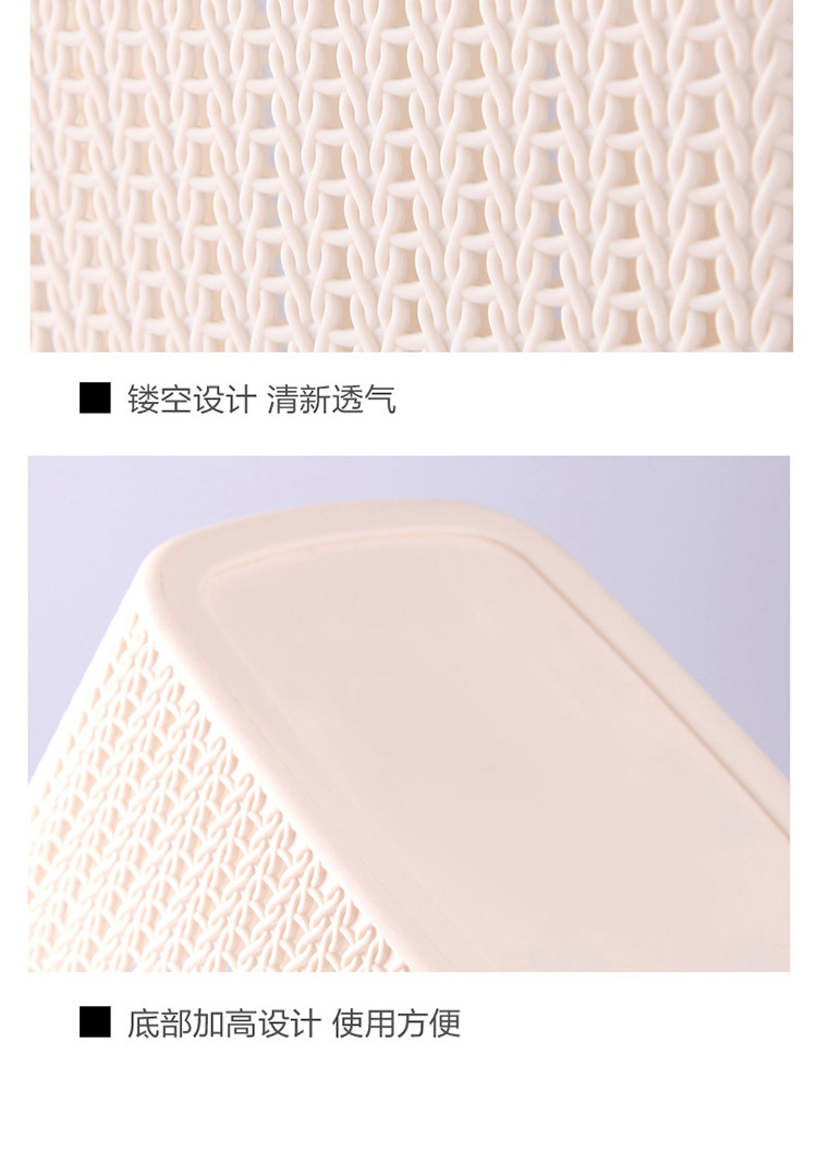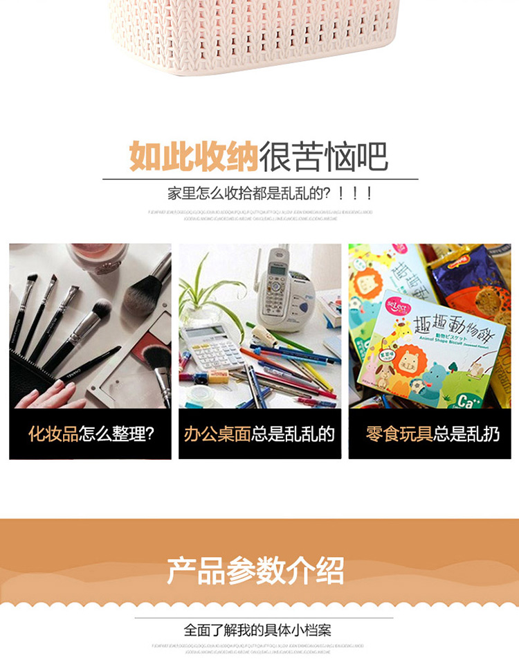 功能及卖点: 仿藤编时尚设计,带盖可叠加,收纳节省空间,整齐有序。