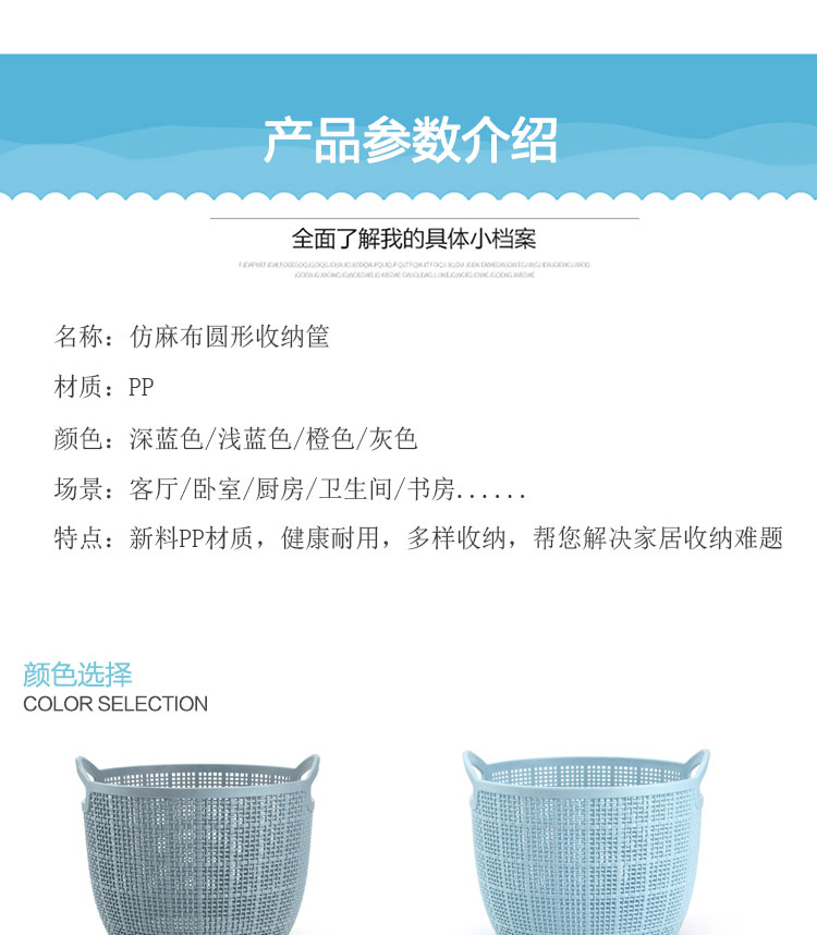 功能及卖点: 仿麻布时尚设计,两侧手提,方便拿取,收纳节省空间,整齐有序。